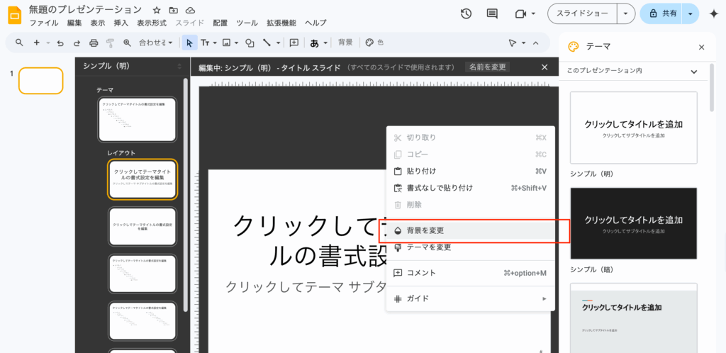 - スライドを右クリック → 「背景を変更」